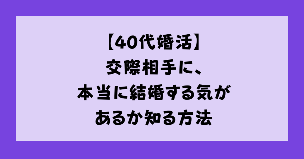 【40代婚活】交際相手に、本当に結婚する気があるか知る方法