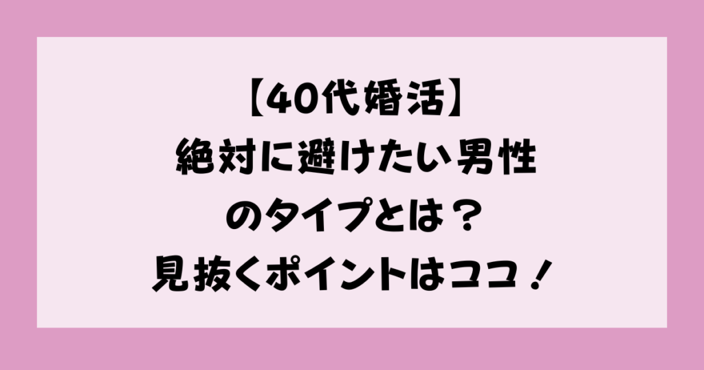 【40代婚活】絶対に避けたい男性のタイプとは?見抜くポイントはココ!