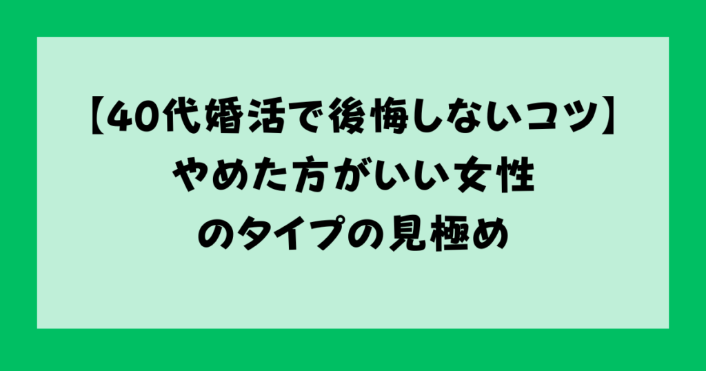 【40代婚活で後悔しないコツ】やめた方がいい女性のタイプの見極め