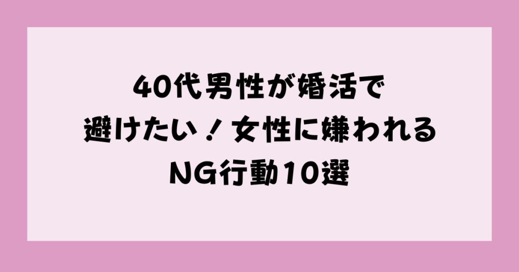 40代になり、改めて結婚を意識し始めた男性も多いのではないでしょうか。しかし、婚活で女性に好かれるためには、注意すべき言動があります。 今回は、40代男性が婚活で... -