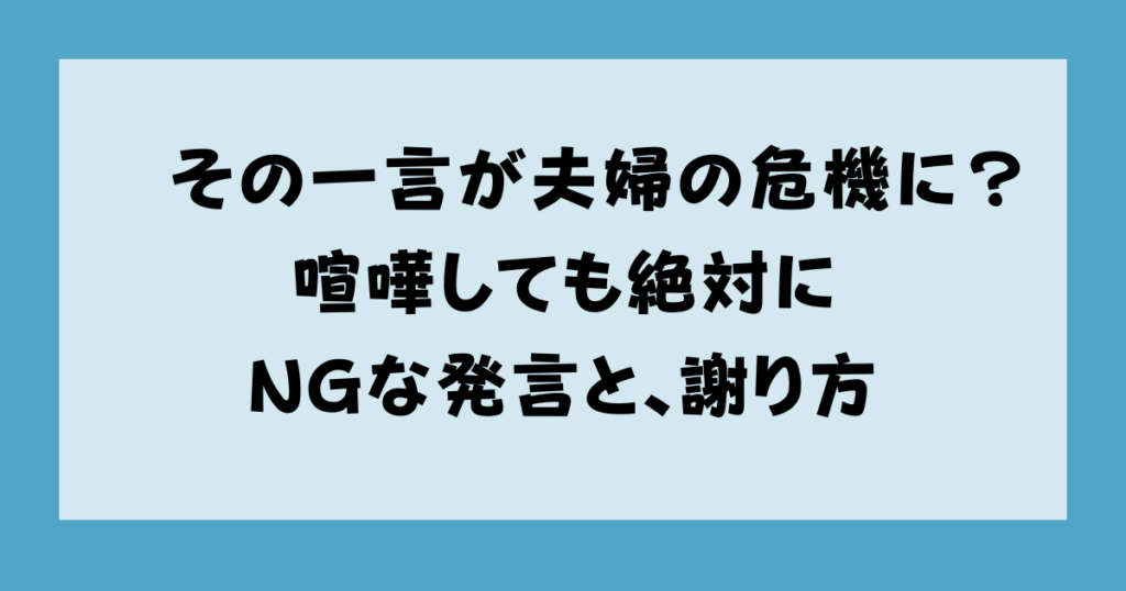 その一言が夫婦の危機に?喧嘩しても絶対にNGな発言と、謝り方
